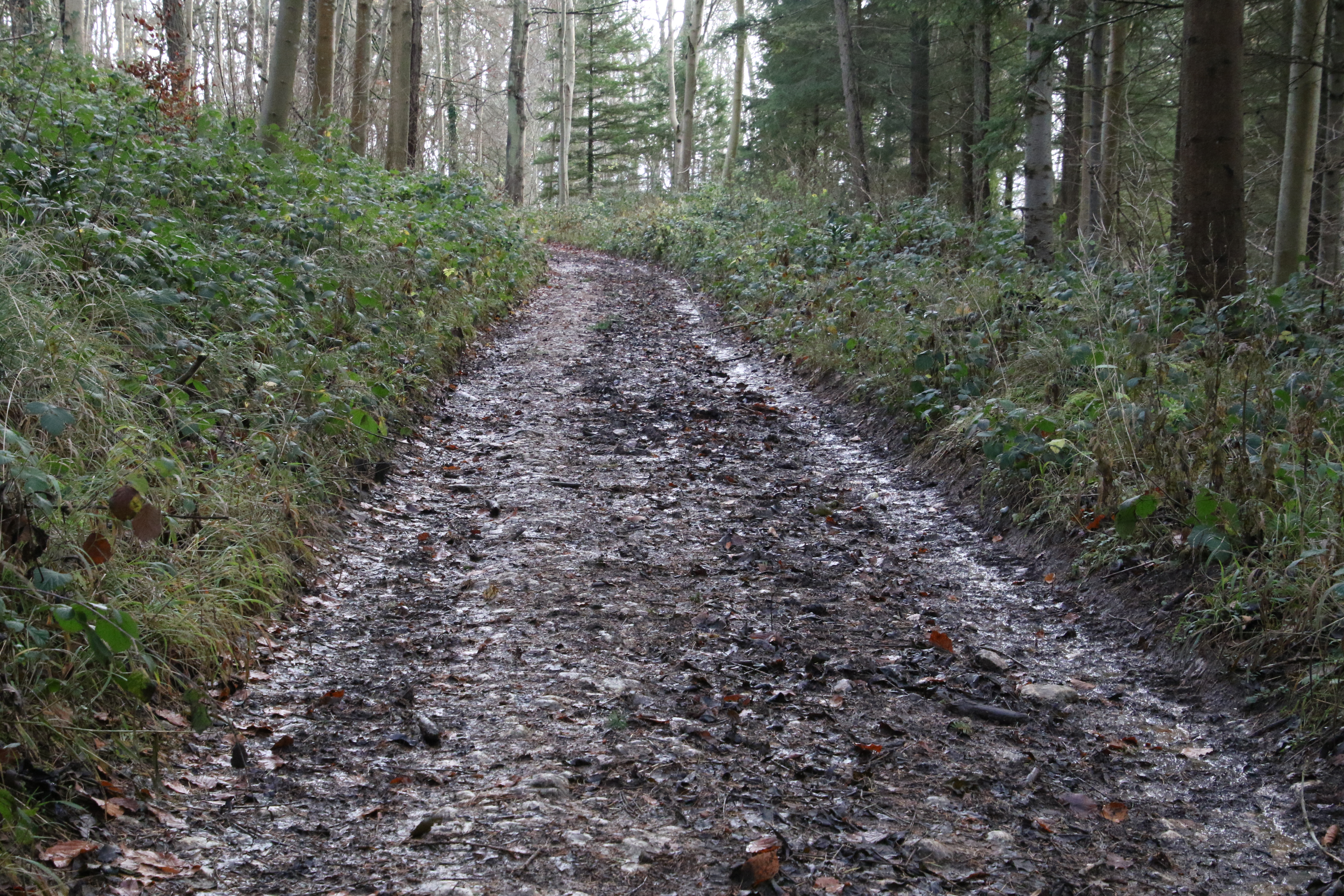 Towards the top of the long gentle ascent from L to N - the track is a mix of mud and hard stone.