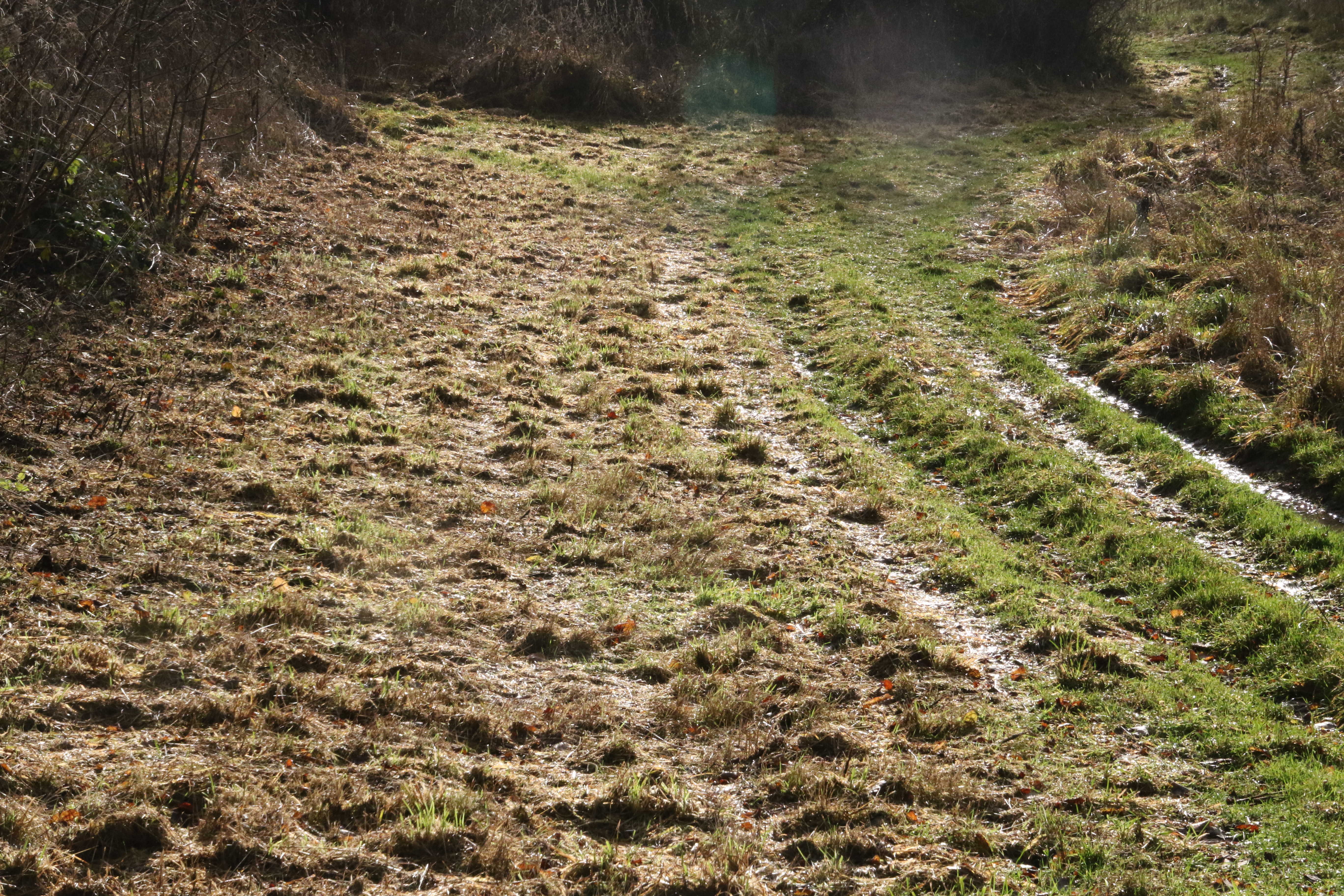 It's flat, mud-free grass all the way from the Start to point D. This photo was taken at point B looking towards D.