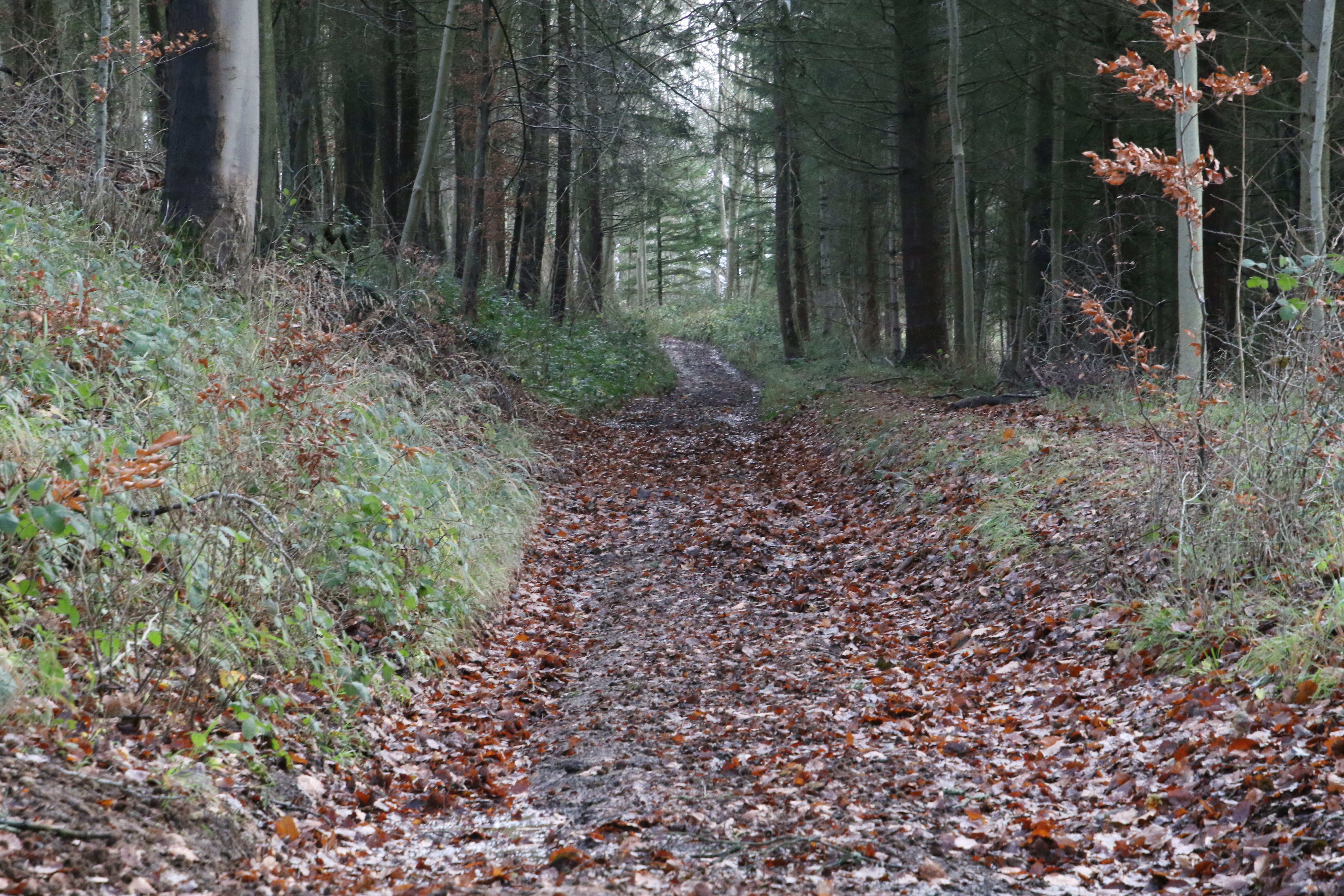 Further along the route between F and H (where there are more fallen branches).